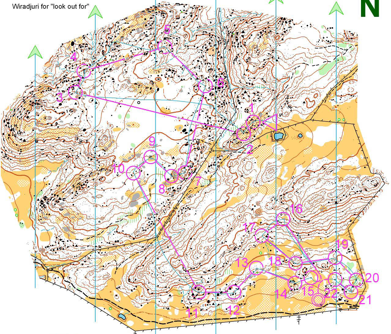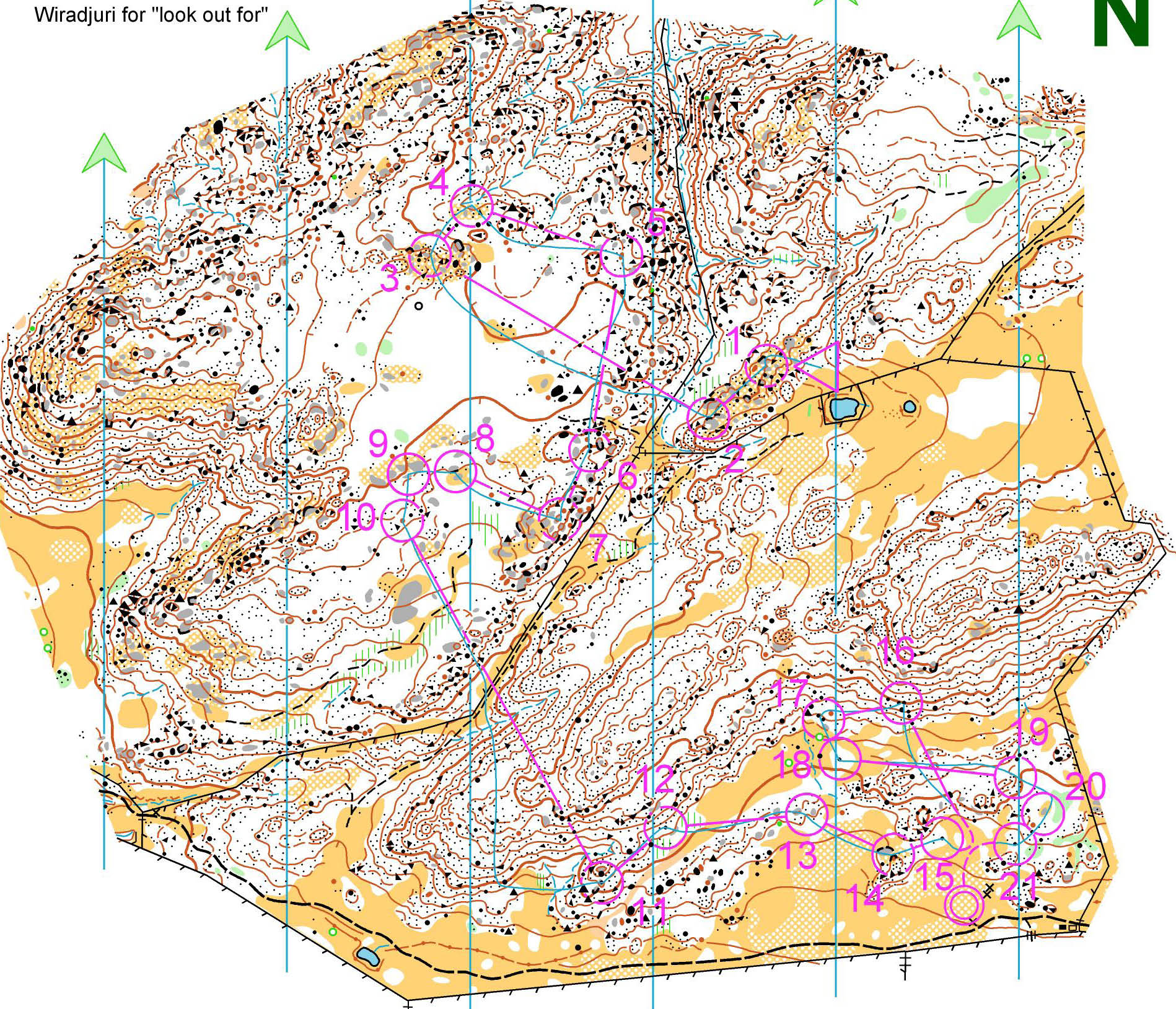 Ultimax Stingers 5 Day — Day 2 & 3 Report Friday, 5 January 2007 Day 2 of the Ultimax 5 days saw competitors return to Kahli’s Rocks but venture into different terrain with a different format. All classes had mass starts with ‘A’ classes also having hageby style loops. That is two loops beginning and ending at central pivot control with half the field doing each loop then swapping. The last 4 controls were common allowing for a spectacular finish.