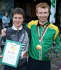 Adrian Jackson and Alex Randall led the way for Australia today, building on yesterday's success.  Adrian qualified fastest in his heat with the fastest time of the day, leading by over 2 minutes.  Alex was 3rd in his heat, only 42 seconds down on the leader.  Paul Darvodelsky (in 22nd place) and David Simpfendorfer (23rd) narrowly missed the final by 31 seconds and 1 minute 27 seconds respectively.  The standard of MTBO fields has been increasing significantly and Adrian and Alex will be in intense battles for places in Friday's final.  Also flying the oceania flag was Chris Forne of New Zealand who qualified 3rd in his heat.