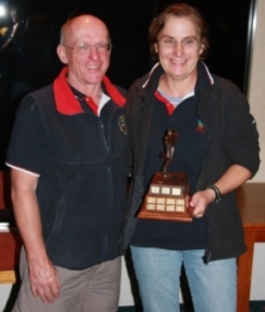 Nick Dent and Hilary Wood (pictured receiving their trophy at Easter) were joint recipients of the 2009 Silva Award for Services to Orienteering.