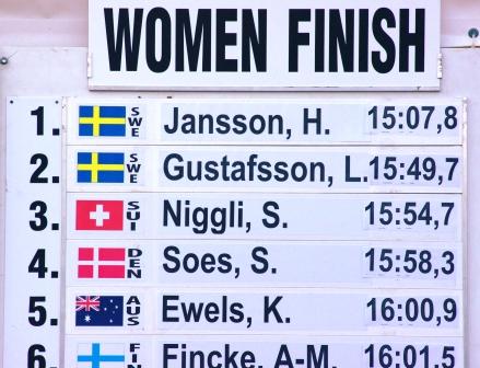 Commencing with the men's event, the Australian supporters warmed up by cheering on Chris Forne and Ross Morrison from New Zealand who both qualified in top 10 positions in their heats. The Men's Final was won by the Russian, Andrey Khramov who has been dominant in sprint events in 2009. Swiss men Fabian Hertner and Daniel Hubmann took second and third placings.