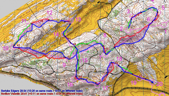 Edgar Bertuks brought home Latvia’s first ever gold medal with a narrow 5 second win in the men’s class.  He had previously a best place of 9th in the middle at WOC 2008 and was the first runner home on the first leg of Jukola this year, proving that he had good form.  Reigning middle distance champion Frenchman Thierry Gueorgiou had to settle for 4th, but was thankful to be able to race after just recovering from a stress fracture.   The fact that five different countries shared the six medals shows just how global orienteering has become.