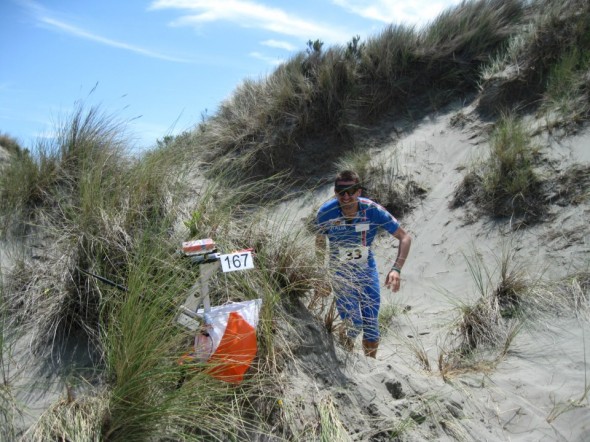 In the men’s event all the top 8 were Swiss and Swedish runners while the women’s top 8 list featured five different nations, albeit with 4 Swedes amongst them.   The fact that the overseas nations raced well in the sand-dune terrain was expected, as particularly the Swedes and Danish have similar areas at home.    The men’s favourite, Norwegian Olav Lundares, looked to be the winner in the finish shute until it was discovered that he had punched a women’s control instead of his number 16.   Chris Forne’s 22nd place was the best NZ result in the men.   Best Aussie Julian Dent was with the leaders in the early stages of the race but lost time later on to finish in 27thth place, with Simon Uppill in 36th.   Lachy Dow made an excellent senior debut for 42nd and rookie Chris Naunton was close behind in 48th.