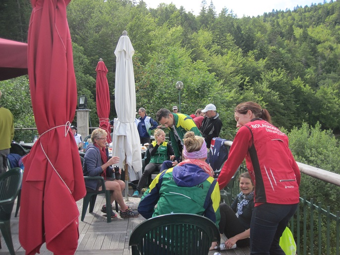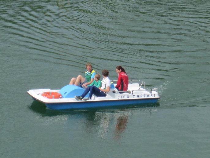 Yesterday (Thursday) was a rest day for the WOC teams but it was an opportunity for the other Aussies to experience the WOC Long terrain on day four of the Five Days of Italy event being held in conjunction with WOC. After this we were invited by the WOC team to an afternoon tea at their team hotel on the south side of Lago Lavarone. A very pleasant and peaceful environment beside this picturesque lake. Toph and Lachie were the captains of the paddle boat entertaining Linus Quayle (who says that he was the captain) while the rest of us enjoyed coffee and cakes on the balcony overlooking the lake. A very nice occasion and the team seemed very relaxed about the challenges of the next two days.