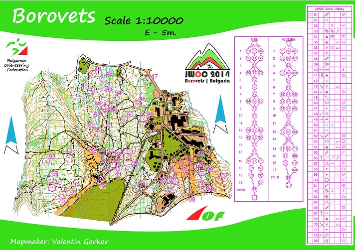 Yesterday saw the conclusion of JWOC 2014 with the relays for men and women held at Borovets near to the team’s accommodation for the week. The map was not as technical as the middle and appeared to be very well suited to a relay. The men did not have such a good day with unfortunately a mp in the second leg by Oliver Poland. The second men’s team finished in 28th place. The women struggled to deal with the relay challenges and finished in 29th and 31st positions.