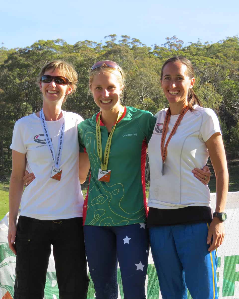 Photo: Jo Allison (2nd), Hanny Allston (1st) and Shannon Jones (3rd) on the podium at the presentation.